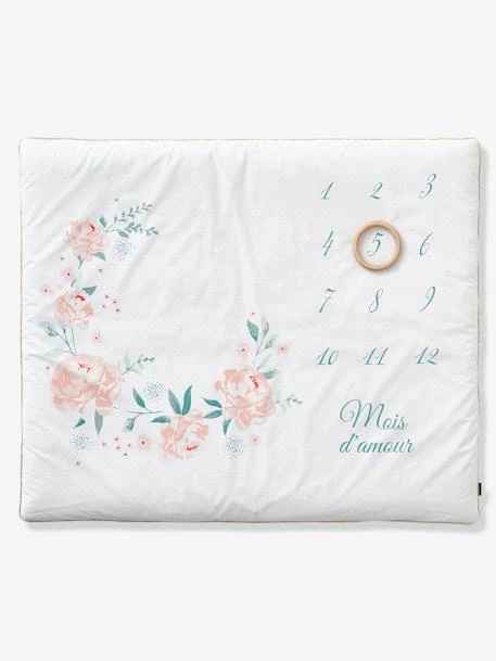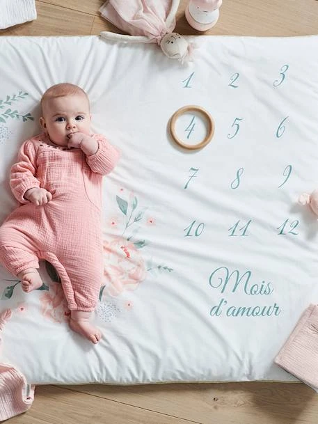Tapis photo bébé EAU DE ROSE en pur coton, garnissage polyester.