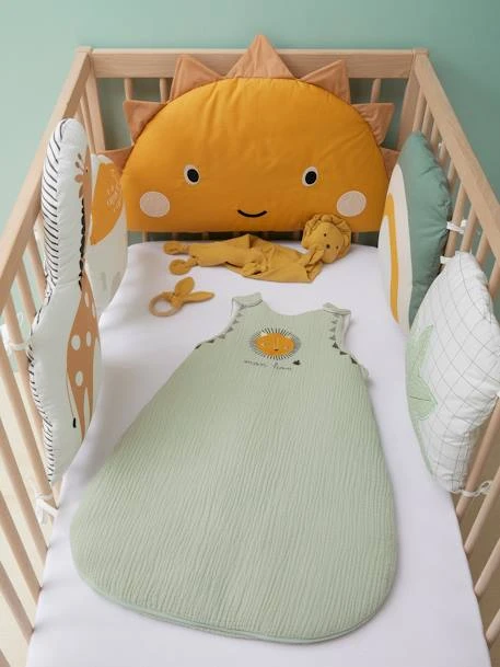 A la fois déco, confortable et anti choc, le tour de lit / tour de parc rassure les enfants en les entourant de douceur et en reproduisant le cocon de la maternité. Bébé pourra s’éveiller en toute sécurité, sans risquer de se cogner contre les barreaux. Les éléments modulables se fixent par nouettes et permettent une bonne circulation de l’air.
